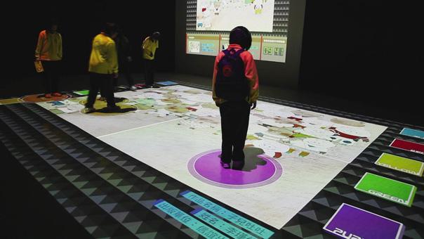 地面互動投影系統(tǒng)采用懸掛在頂部的投影設(shè)備把影像效果投射到地面,當(dāng)參訪者走至投影區(qū)域時,通過系統(tǒng)識別,參訪者可以直接使用雙腳或動作與投影幕上的虛擬場景進行交互,各種 ……